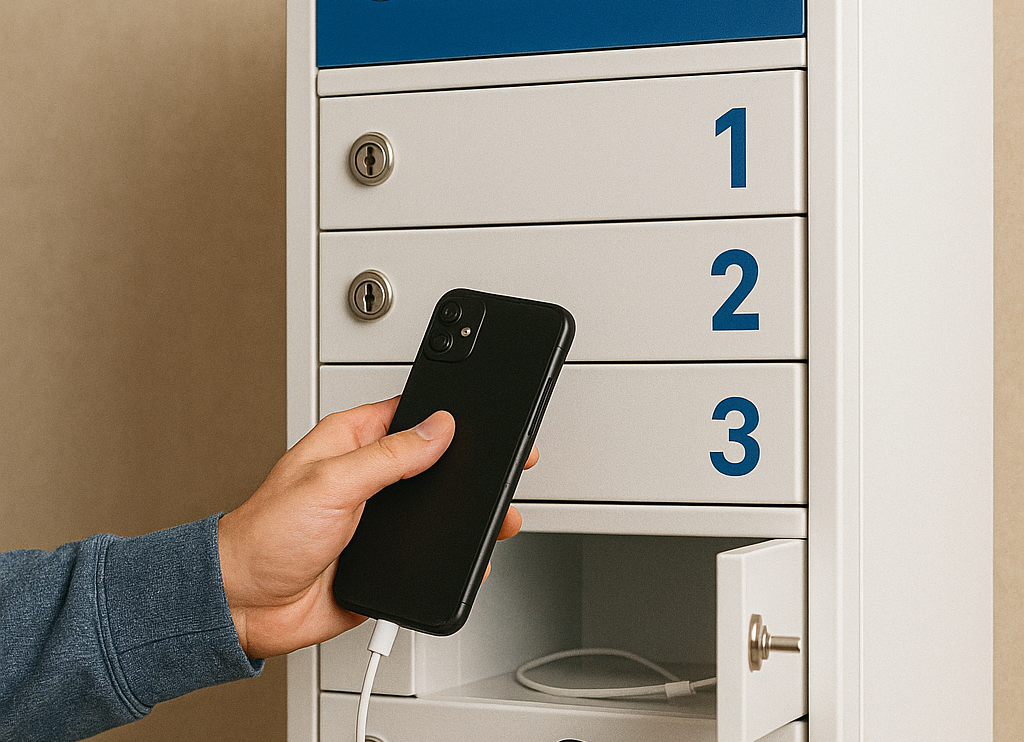 É um equipamento moderno que ajuda colaboradores, visitantes e clientes a carregarem seus celulares com segurança.